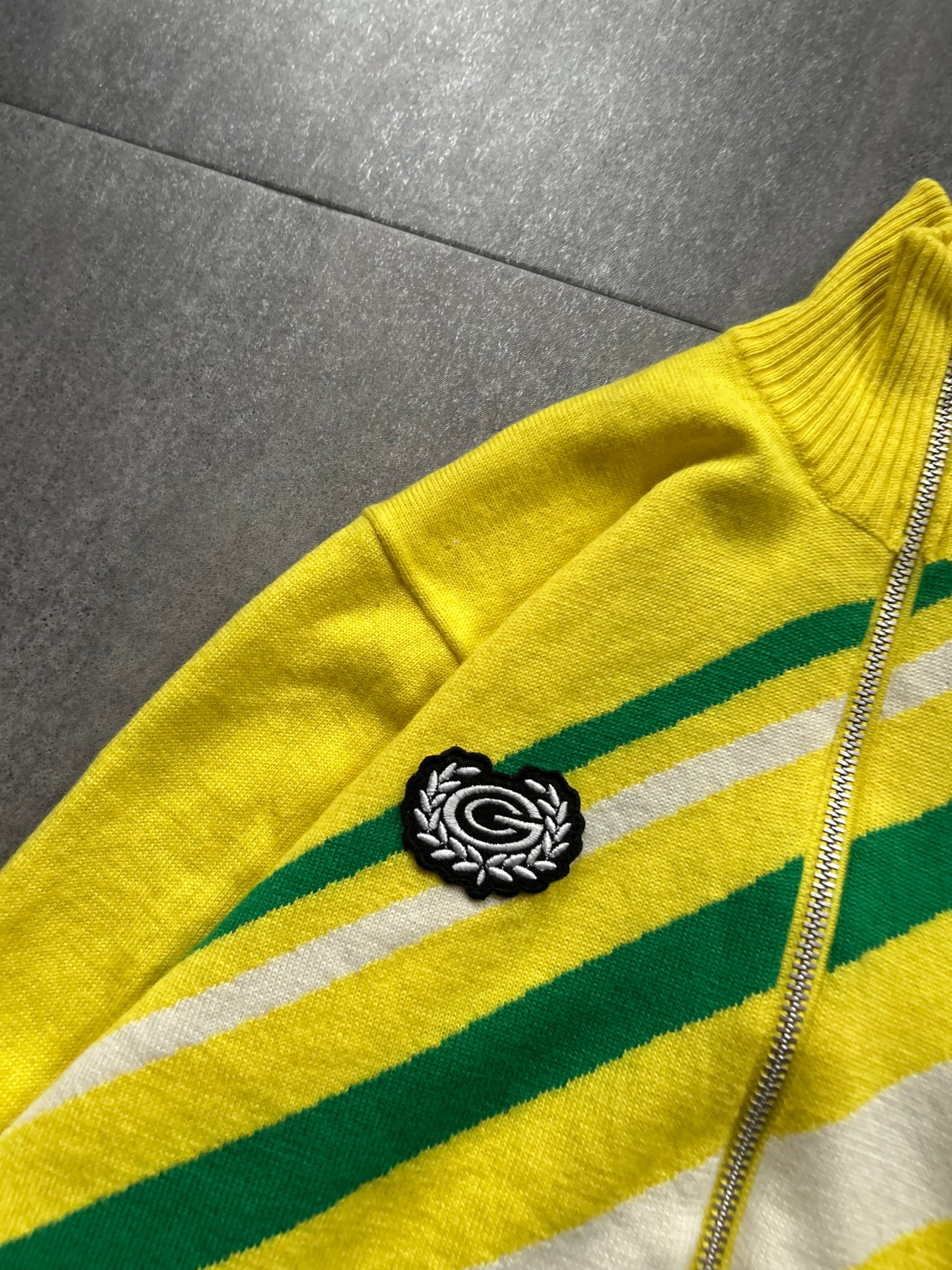 Embroidery trefoil logo on sleeves
